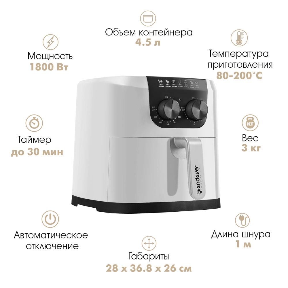 Аэрогриль Endever Skyline AF-126, белый (1800 Вт /4,5 л ) - Интернет-магазин Матрица: бытовая техника, электроника, товары для дома и др.