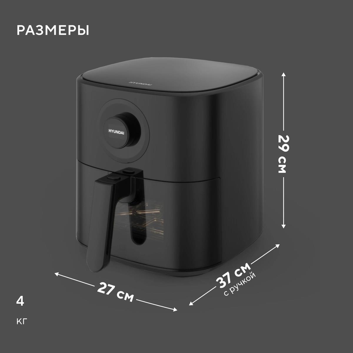 Аэрогриль Hyundai HYF-5003 1500Вт черный/черный (1500 Вт /5,5 л ) - Интернет-магазин Матрица: бытовая техника, электроника, товары для дома и др.