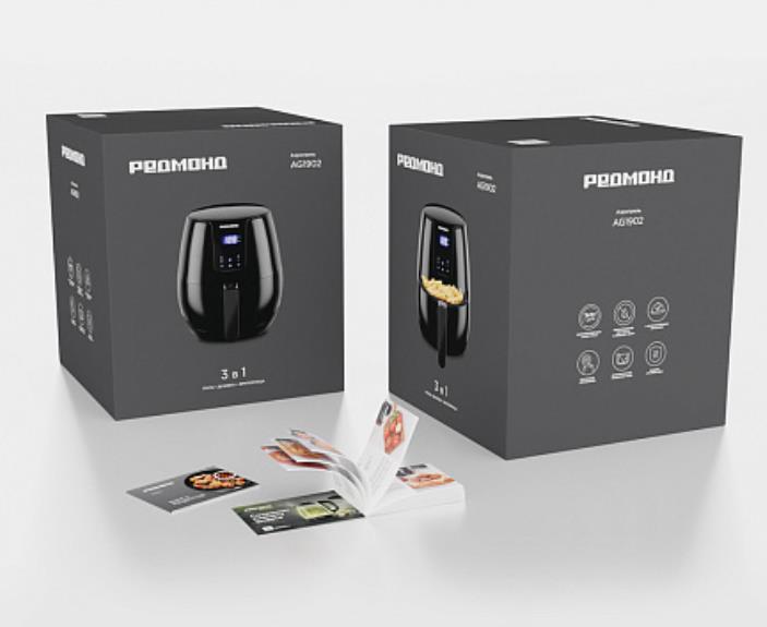 РЕДМОНД AG1902 — аэрогриль 3 в 1 с функциями гриля, духовки и фритюрницы. Подходит для запекания хрустящего картофеля фри, морепродуктов, выпечки и других блюд — у него 7 автоматических программ. Приготовление происходит при помощи конвекции Turbo Cycle: потоки раскаленного воздуха обдувают продукт. Антипригарное покрытие не позволит ломтикам пригореть, а вы сможете готовить без лишнего жира.