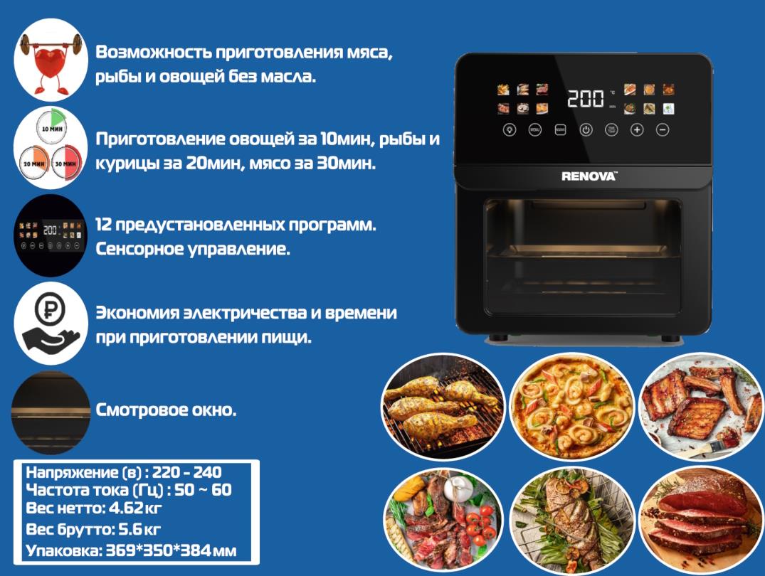 Аэрогриль Renova AF6-TB2 (1700 Вт /12 л ) - Интернет-магазин Матрица: бытовая техника, электроника, товары для дома и др.