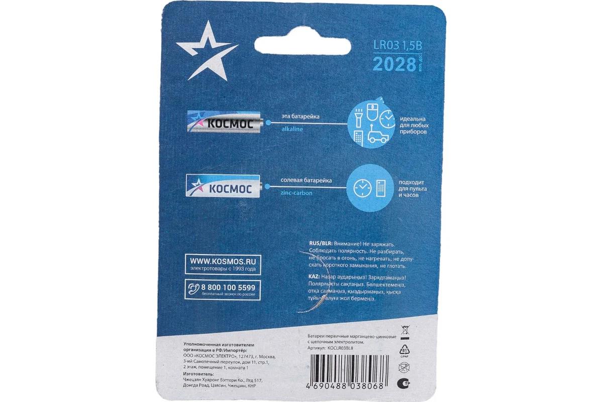 Батарейка Космос KOCLR03BL8 серебро/голубой (ААА (R03;LR03;FR03) 1,5 В щелочная (алкалиновая)) - Интернет-магазин Матрица: бытовая техника, электроника, товары для дома и др.
