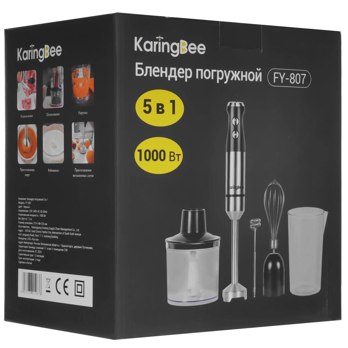 Блендер KaringBee FY-807 (погружной/1000 Вт/серебристый, черный) - Интернет-магазин Матрица: бытовая техника, электроника, товары для дома и др.