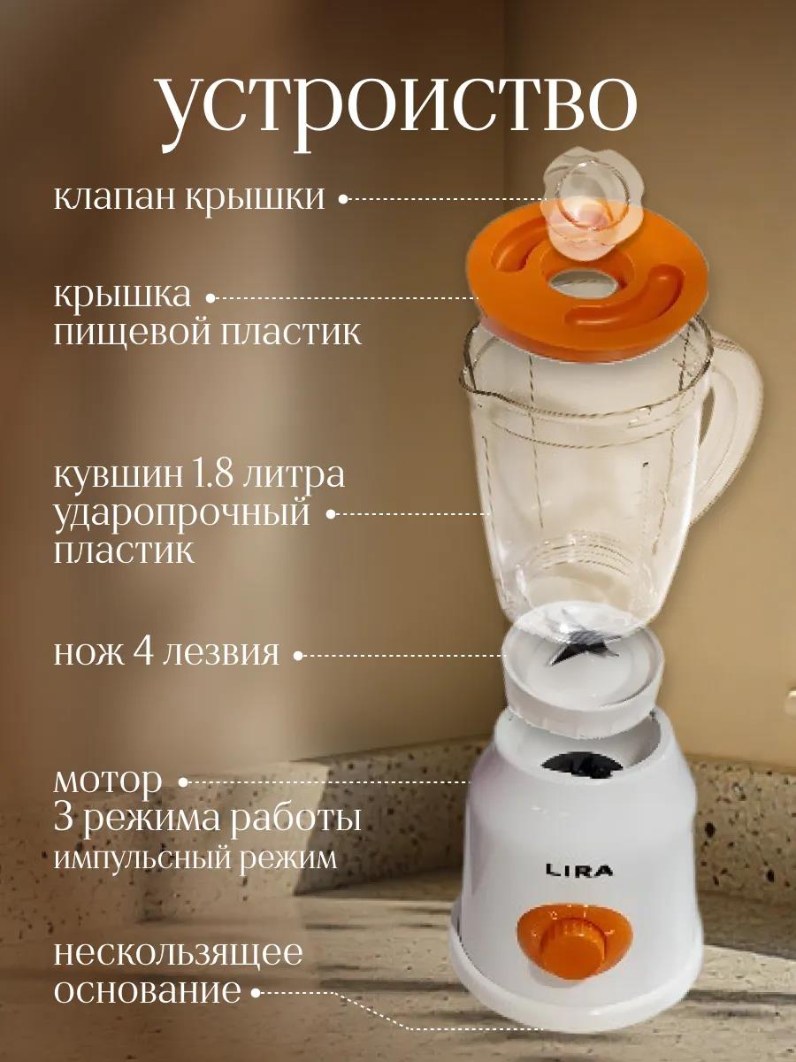 Блендер Lira LR0211 (стационарный/600 Вт/оранжевый, белый)