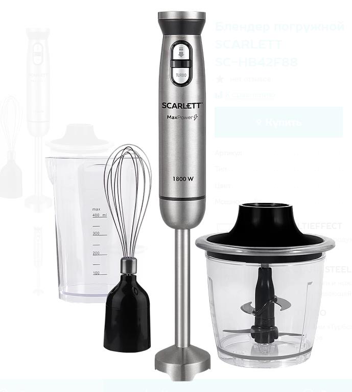 Блендер Scarlett SC-HB42F88 (сталь) (погружной/1800 Вт/серебристый, черный) - Интернет-магазин Матрица: бытовая техника, электроника, товары для дома и др.