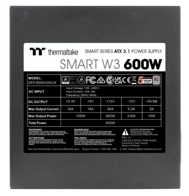 Блок питания Thermaltake Smart W3 (PS-SPW-0600NNFAWE-1) (600 Вт ) - Интернет-магазин Матрица: бытовая техника, электроника, товары для дома и др.