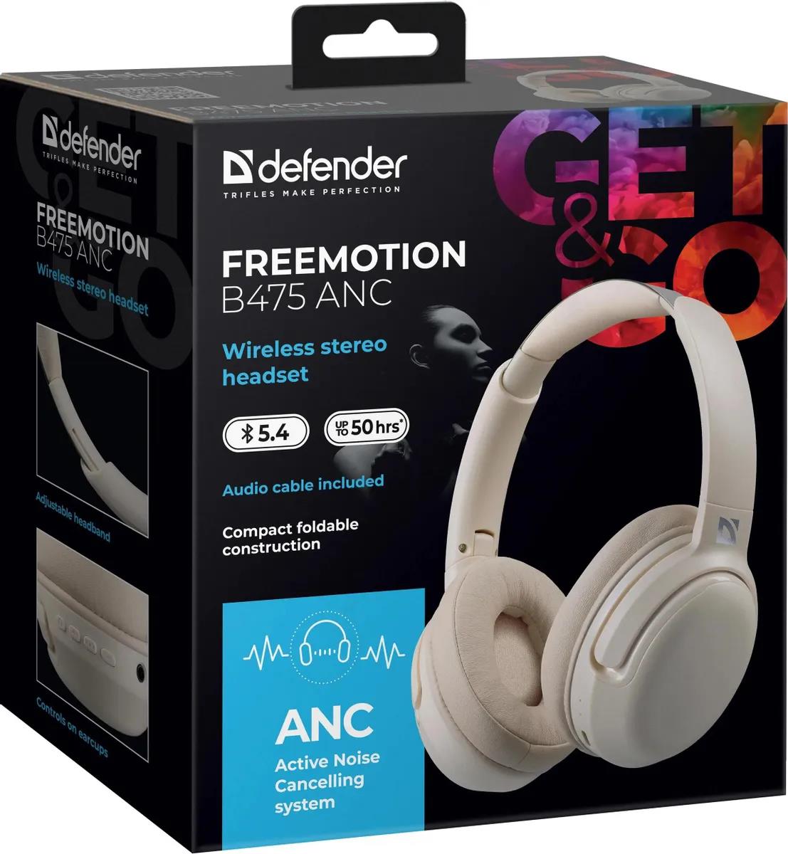 Bluetooth-гарнитура/наушники Defender FreeMotion B475 ANC, ANC, Bluetooth (бежевый)