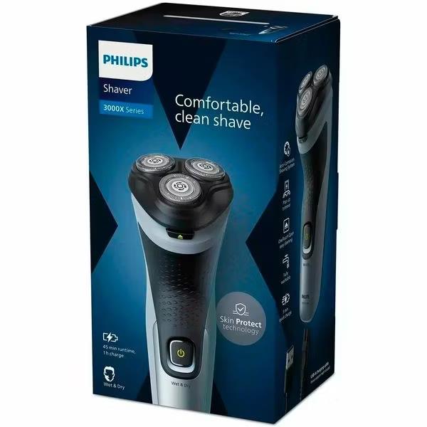 Электробритва Philips 3000X Series (X3063/00) поддерживает сухое и влажное бритье и справляется с волосками любой жесткости благодаря трем бреющим элементам в виде 3D плавающих головок. Водонепроницаемый корпус инструмента выполнен по стандарту пылевлагозащиты IPX7, оснащен противоскользящей ручкой и легко удерживается во время процедур. Головки тесно прилегают к коже, адаптируются к контурам лица и шеи, обеспечивая тщательное удаление волосков за один проход. • 27 самозатачивающихся лезвий Антикоррозионная система лезвий ComfortCut аккуратно и безболезненно подстригает волоски на уровне кожи и сохраняет свои функции в течение двух лет, выполняя бритье без царапин и травмирования. Сменный блок — SH30 (не входит в комплект).