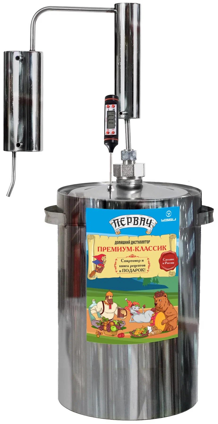 Приготовление дистиллята уже давно стало увлечением многих мужчин. Кропотливый процесс требует терпения и аккуратности. Далеко не последнюю роль играет качество дистиллятора. Домашний дистиллятор Премиум-Классик 30Т предназначен для получения качественного продукта. «Первач» производства Уральского Завода Бытовых Изделий подходит для использования на газовых и электрических плитах.