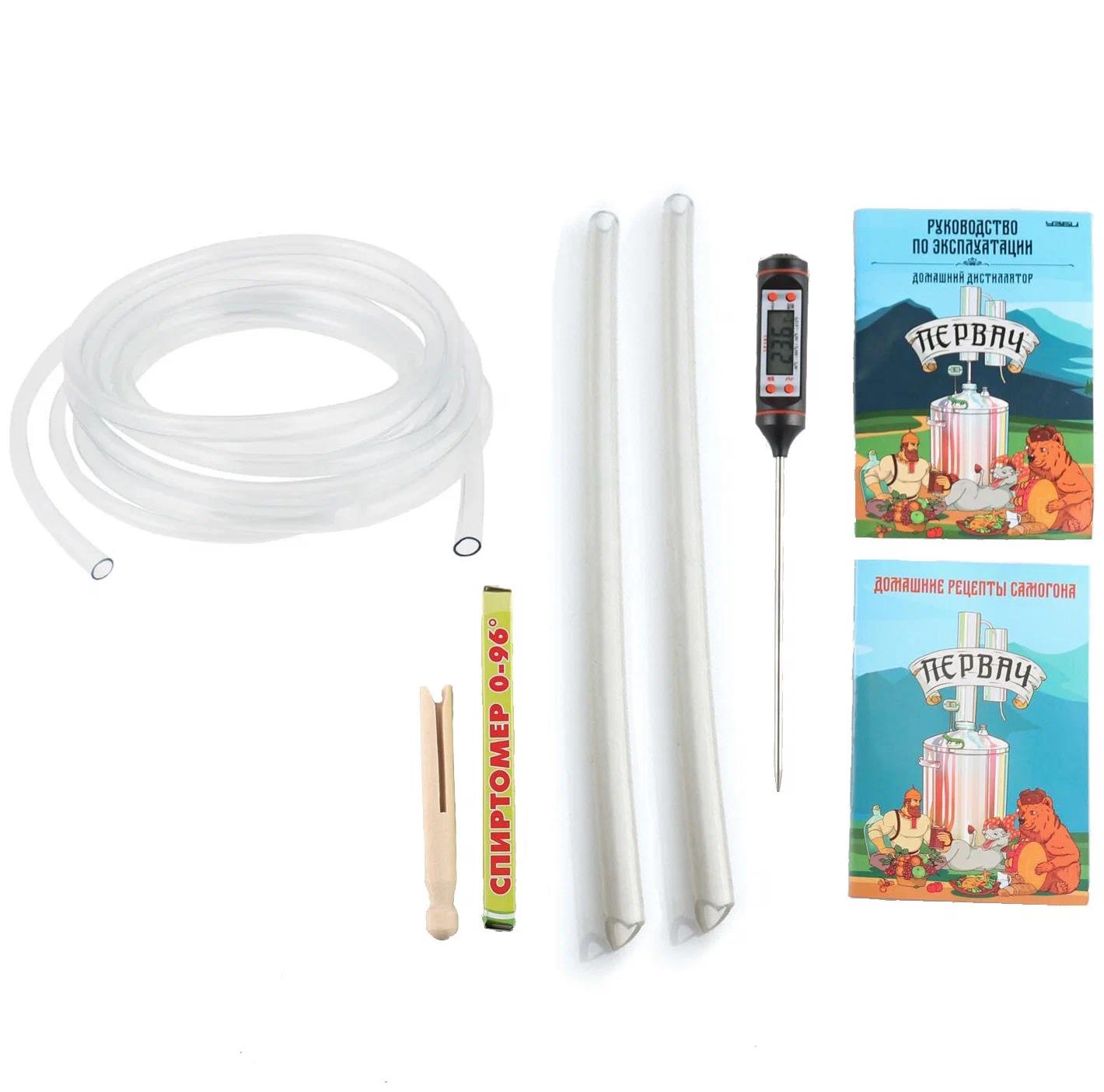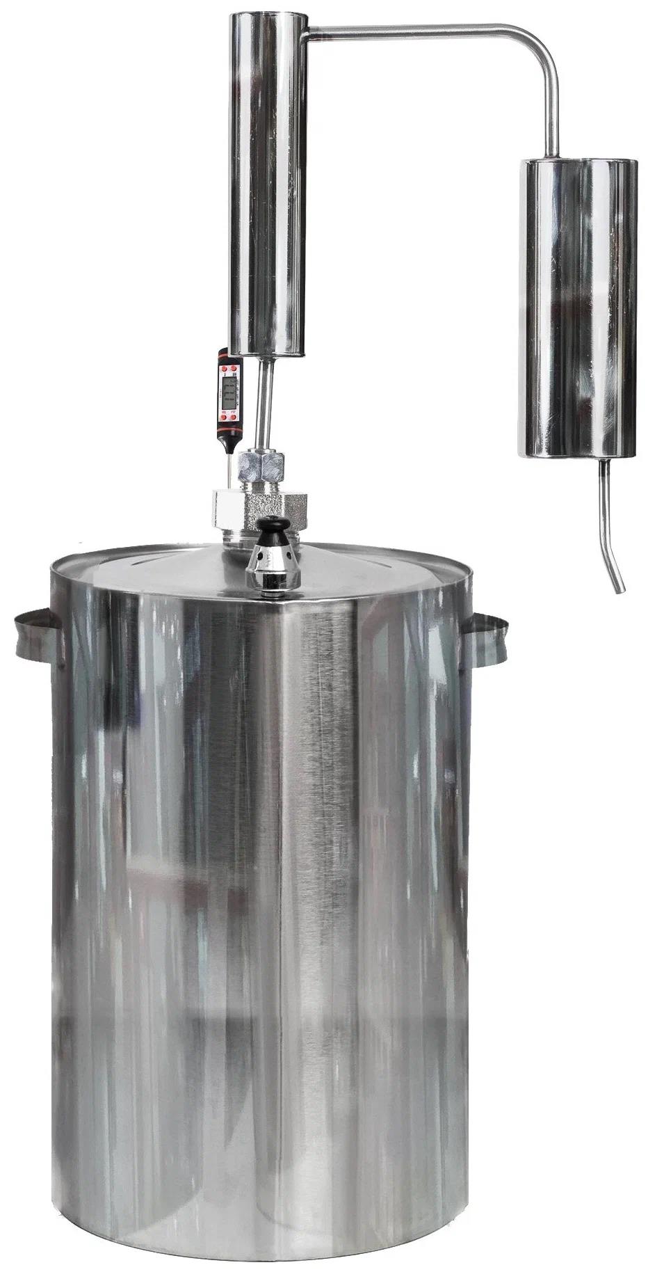 Бак объемом 30 л - 1 шт., термометр - 1 шт., сухопарник + охладитель - 1 шт., клапан сброса избыточного давления - 1 шт., шланг для подвода и отвода холодной воды - 1 шт., силиконовый шланг для выхода готового продукта - 1 шт., силиконовая трубка с зажимом для слива сивушных масел - 1 шт., прищепка - 1 шт., руководство по эксплуатации - 1 шт.