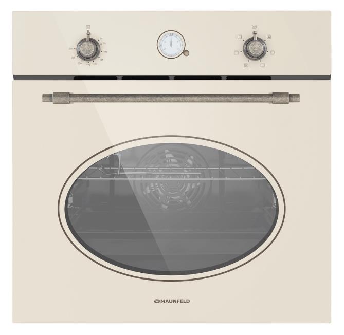Электрический духовой шкаф MAUNFELD EOEFG.566RIB.RT относится к независимому типу устройств и может быть легко установлена в подходящем месте на кухне, а за счет лаконичного ретро-дизайна, сочетающего в себе теплые цвета корпуса, а также поворотных переключателей температуры и режимов работы, модель станет ярким украшением интерьера. Откидная дверца с двойным стеклом оснащена удобной ручкой, которая не нагревается при работе. Электрический духовой шкаф MAUNFELD EOEFG.566RIB.RT имеет мощность 2000 Вт и максимальную температуру до 250 °C, что вкупе с различными режимами прогрева, грилем и конвекцией обеспечит качественное и быстрое приготовление различных блюд — будь то выпечки, мяса, рыбы или птицы. Встроенный таймер позволит удобно контролировать время приготовления. Объем камеры составляет 56 л, благодаря чему вы без труда сможете разместить для одновременного приготовления сразу несколько противней и решеток. Особое эмалированное покрытие стенок обеспечит простой уход за духовкой после использования.