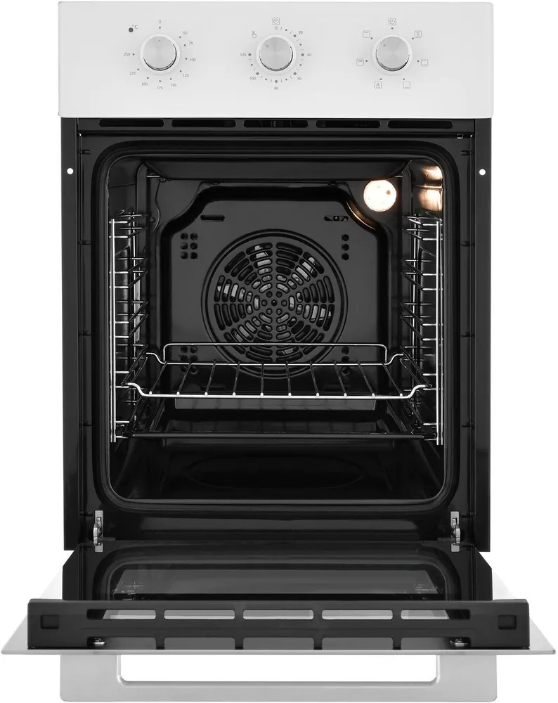 ZUGEL ZOE451W — это узкий встраиваемый электрический духовой шкаф белого цвета шириной 45 см, предназначенный для компактных кухонь.