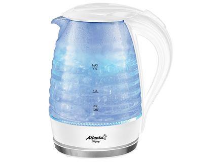Электрический чайник Atlanta ATH-2467 (2000 Вт/1,7 л /стекло, пластик/прозрачный, белый) - Интернет-магазин Матрица: бытовая техника, электроника, товары для дома и др.