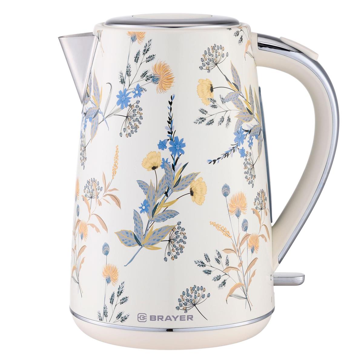 Электрический чайник Brayer BR1083YE (2200 Вт/1,7 л /сталь/желтый, рисунок) - Интернет-магазин Матрица: бытовая техника, электроника, товары для дома и др.