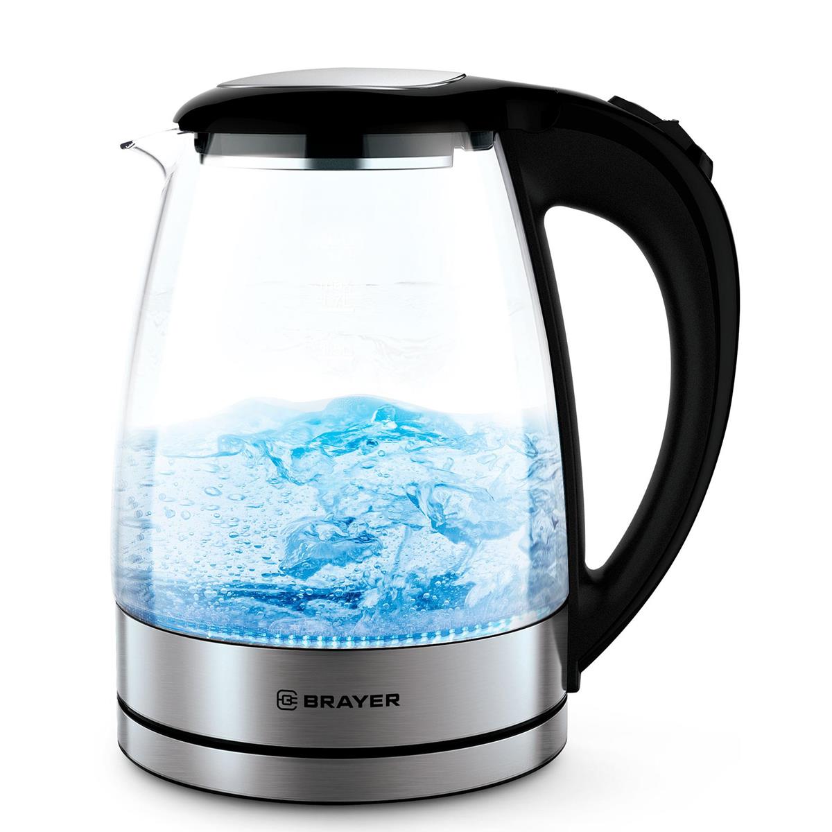 Электрический чайник Brayer BR6116 (1800 Вт/1,7 л /стекло/прозрачный, черный, серебристый) - Интернет-магазин Матрица: бытовая техника, электроника, товары для дома и др.