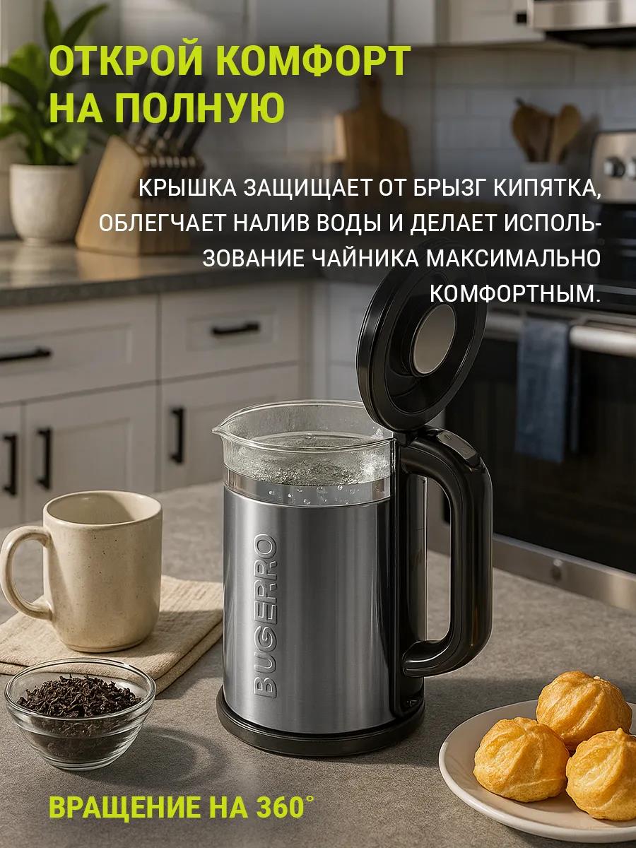Электрический чайник BUGERRO BG-5602 (1550 Вт/1,8 л /стекло, металл/сталь) - Интернет-магазин Матрица: бытовая техника, электроника, товары для дома и др.