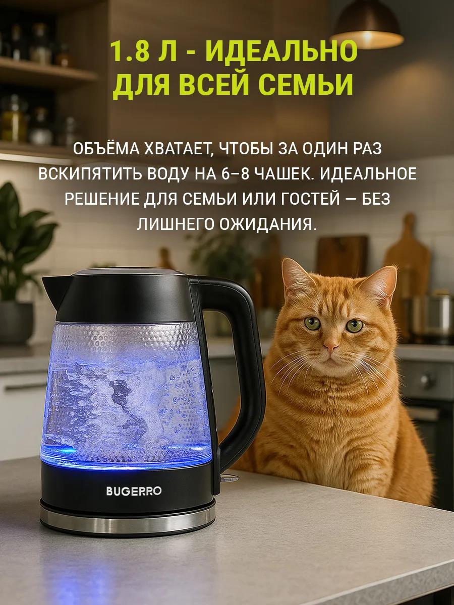 Электрический чайник BUGERRO BG-5607 (2100 Вт/1,8 л /стекло, пластик/прозрачный, черный) - Интернет-магазин Матрица: бытовая техника, электроника, товары для дома и др.