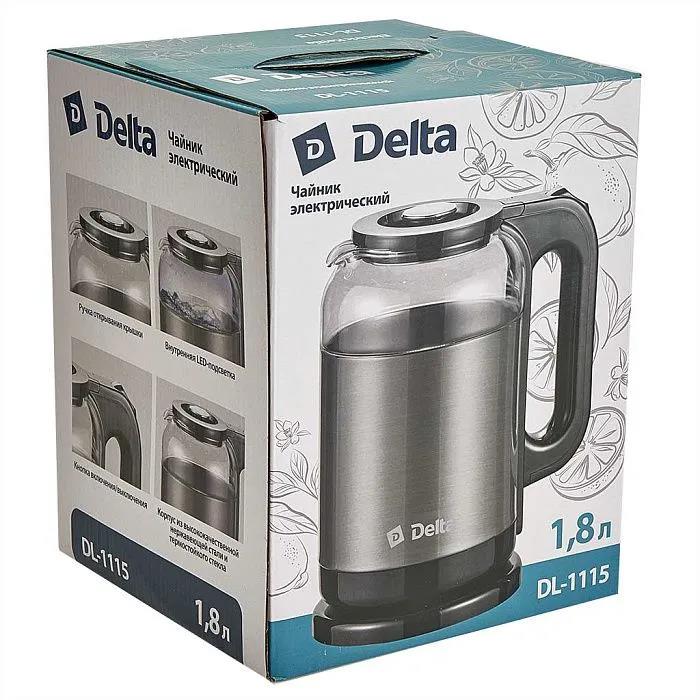 Электрический чайник DELTA DL-1115 (1500 Вт/1,8 л /стекло, пластик/серый, прозрачный) - Интернет-магазин Матрица: бытовая техника, электроника, товары для дома и др.