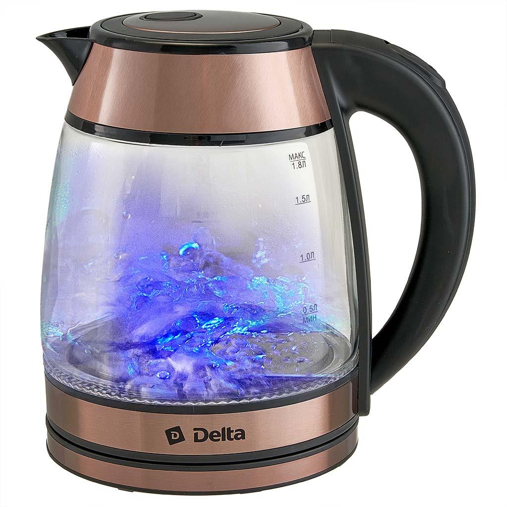 Электрический чайник DELTA DL-1120 (1500 Вт/1,8 л /стекло/медный, прозрачный) - Интернет-магазин Матрица: бытовая техника, электроника, товары для дома и др.