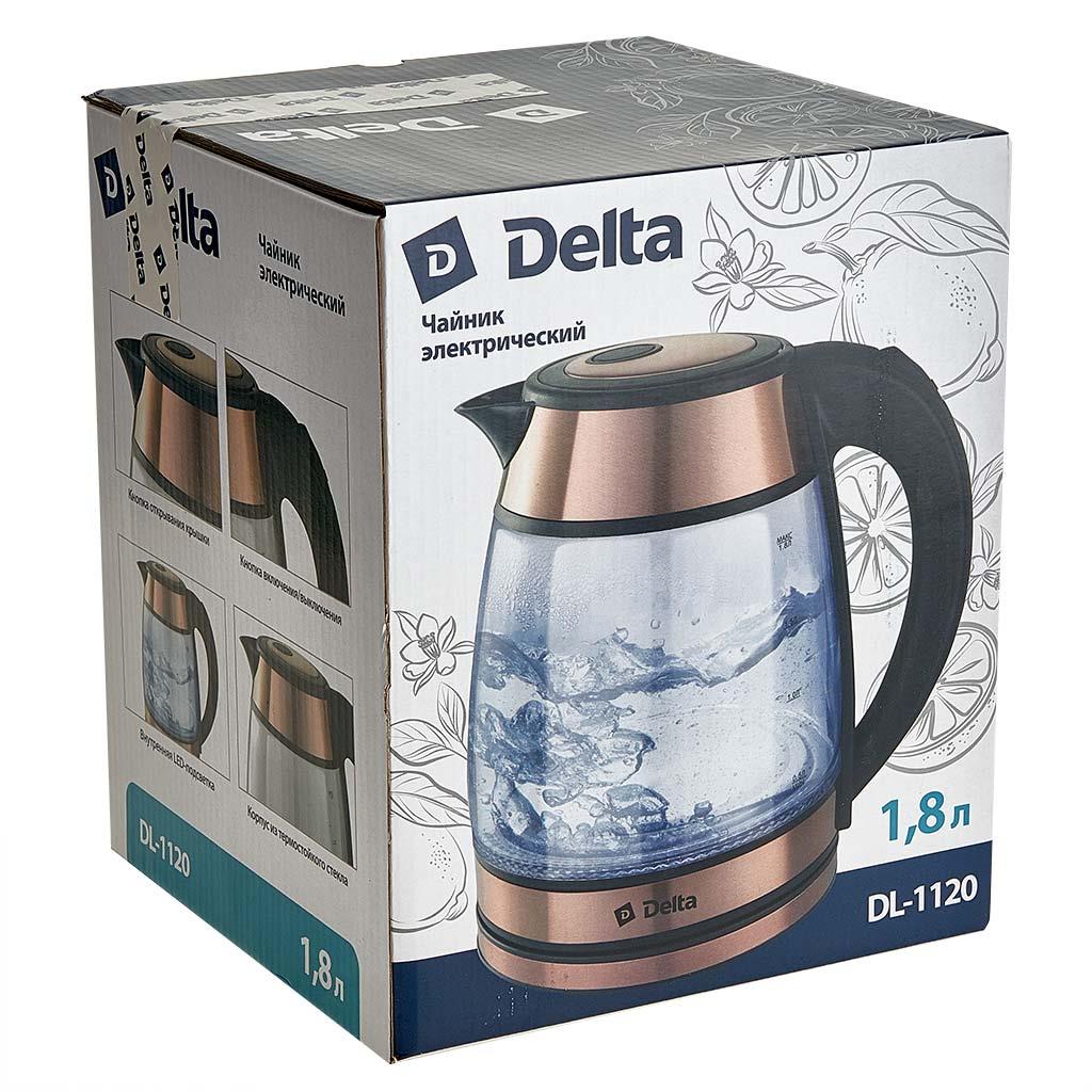 Электрический чайник DELTA DL-1120 (1500 Вт/1,8 л /стекло/медный, прозрачный)