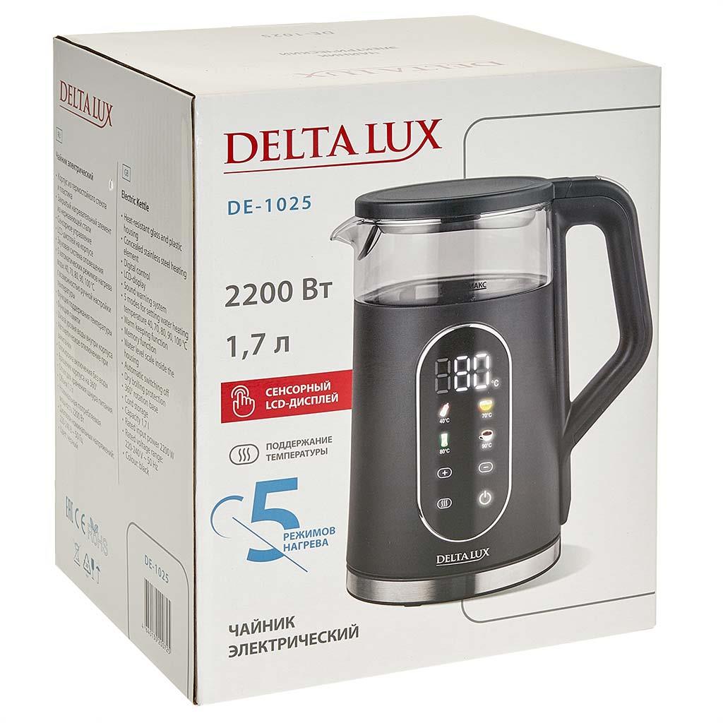 Электрический чайник DELTA LUX DE-1025 (2200 Вт/1,7 л /стекло, пластик/черный) - Интернет-магазин Матрица: бытовая техника, электроника, товары для дома и др.
