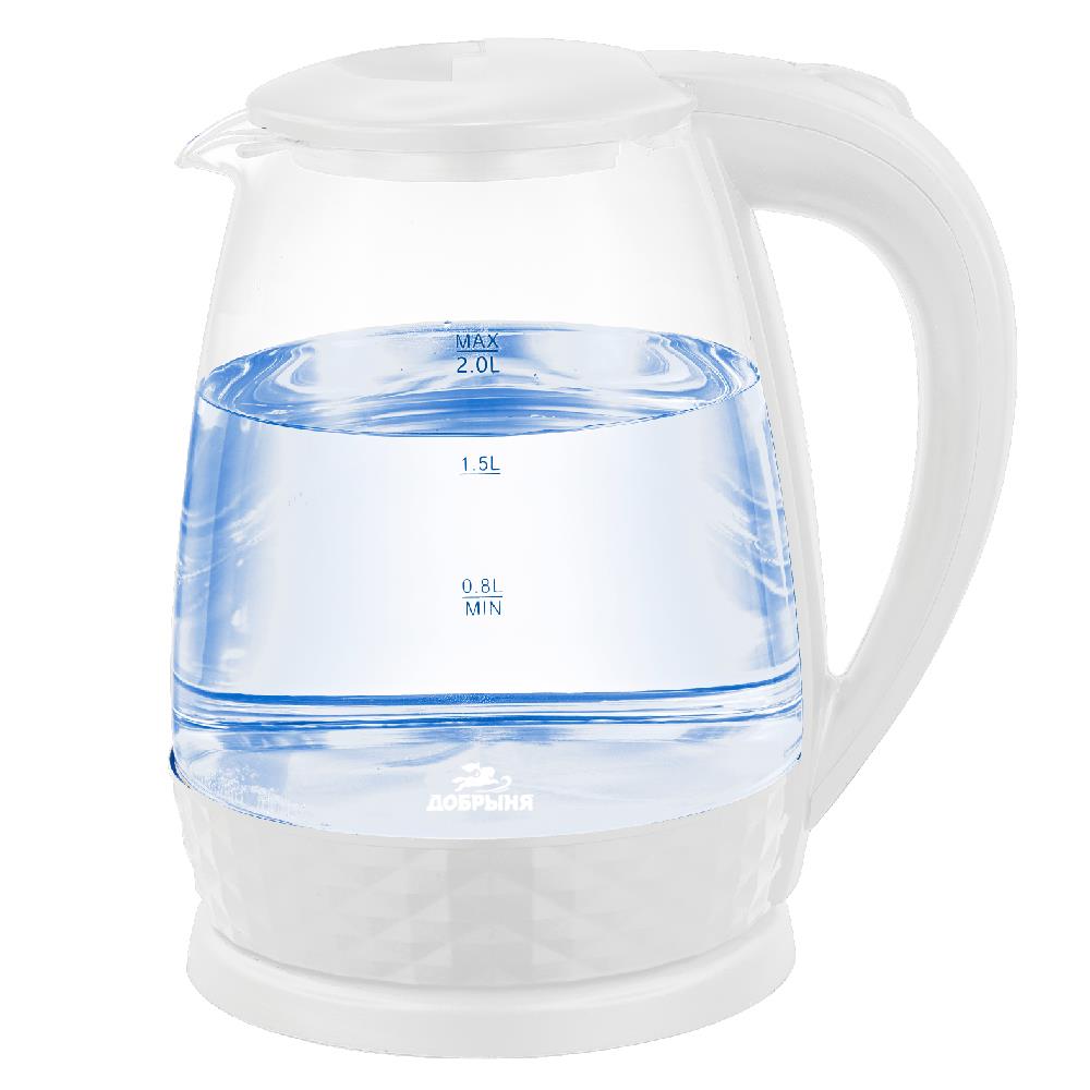 Электрический чайник Добрыня DO-1252W (1800 Вт/1,8 л /стекло, пластик/прозрачный, белый) - Интернет-магазин Матрица: бытовая техника, электроника, товары для дома и др.