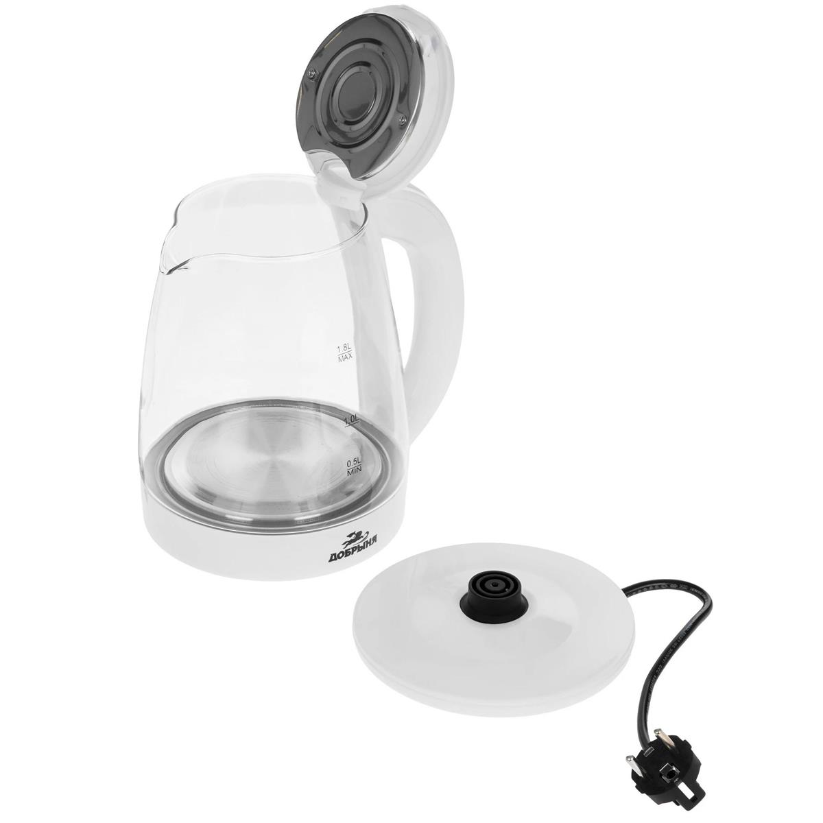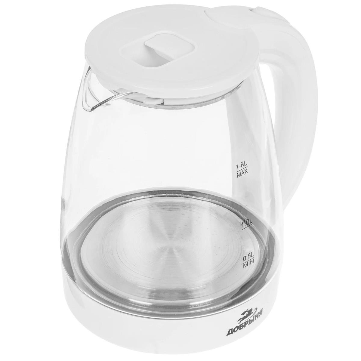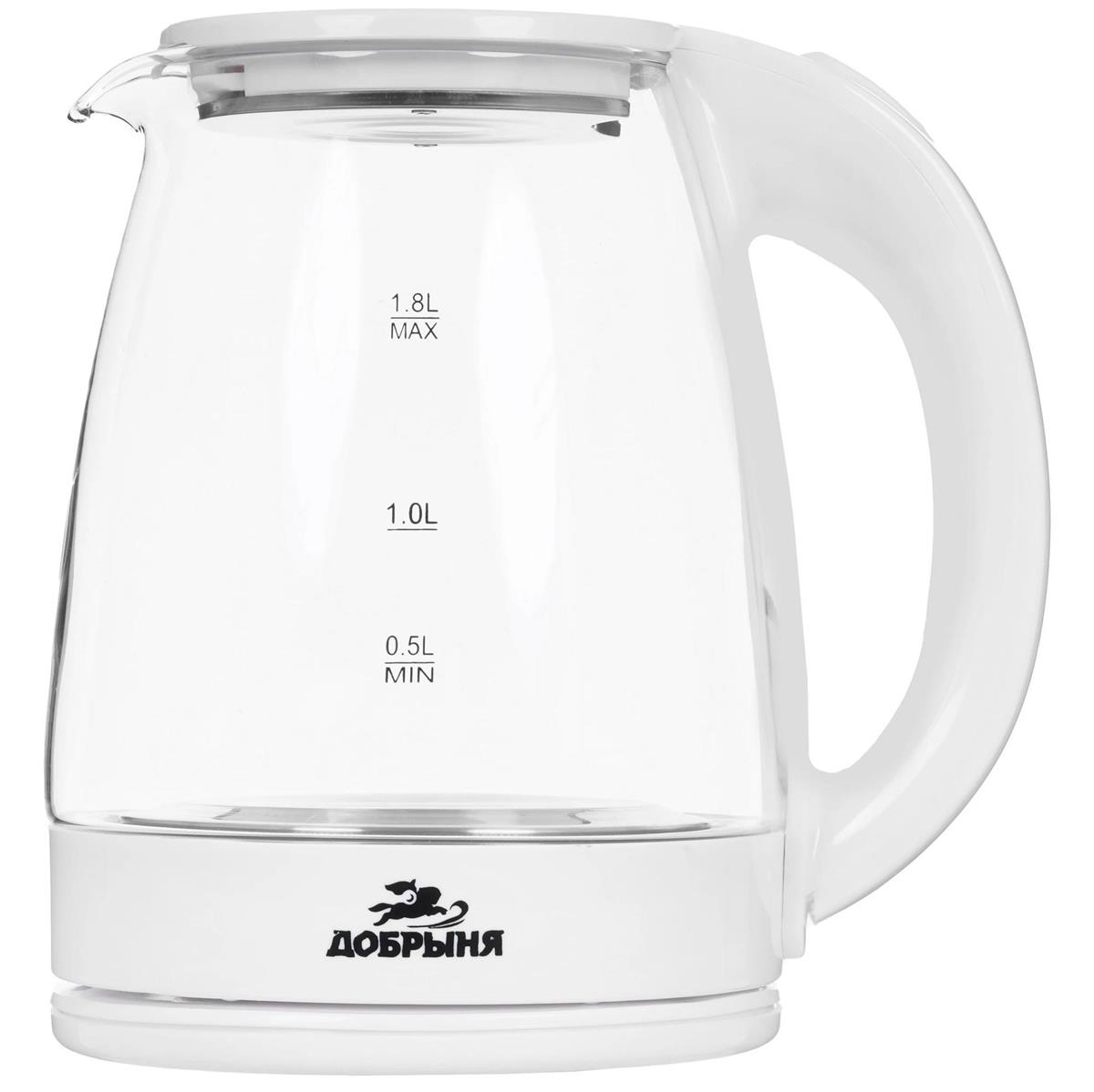 Электрический чайник Добрыня DO-1254W (1800 Вт/1,8 л /стекло, пластик/прозрачный, белый) - Интернет-магазин Матрица: бытовая техника, электроника, товары для дома и др.