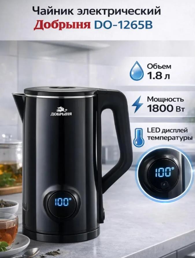 Электрический чайник Добрыня DO-1265B (2000 Вт/1,8 л //черный) - Интернет-магазин Матрица: бытовая техника, электроника, товары для дома и др.