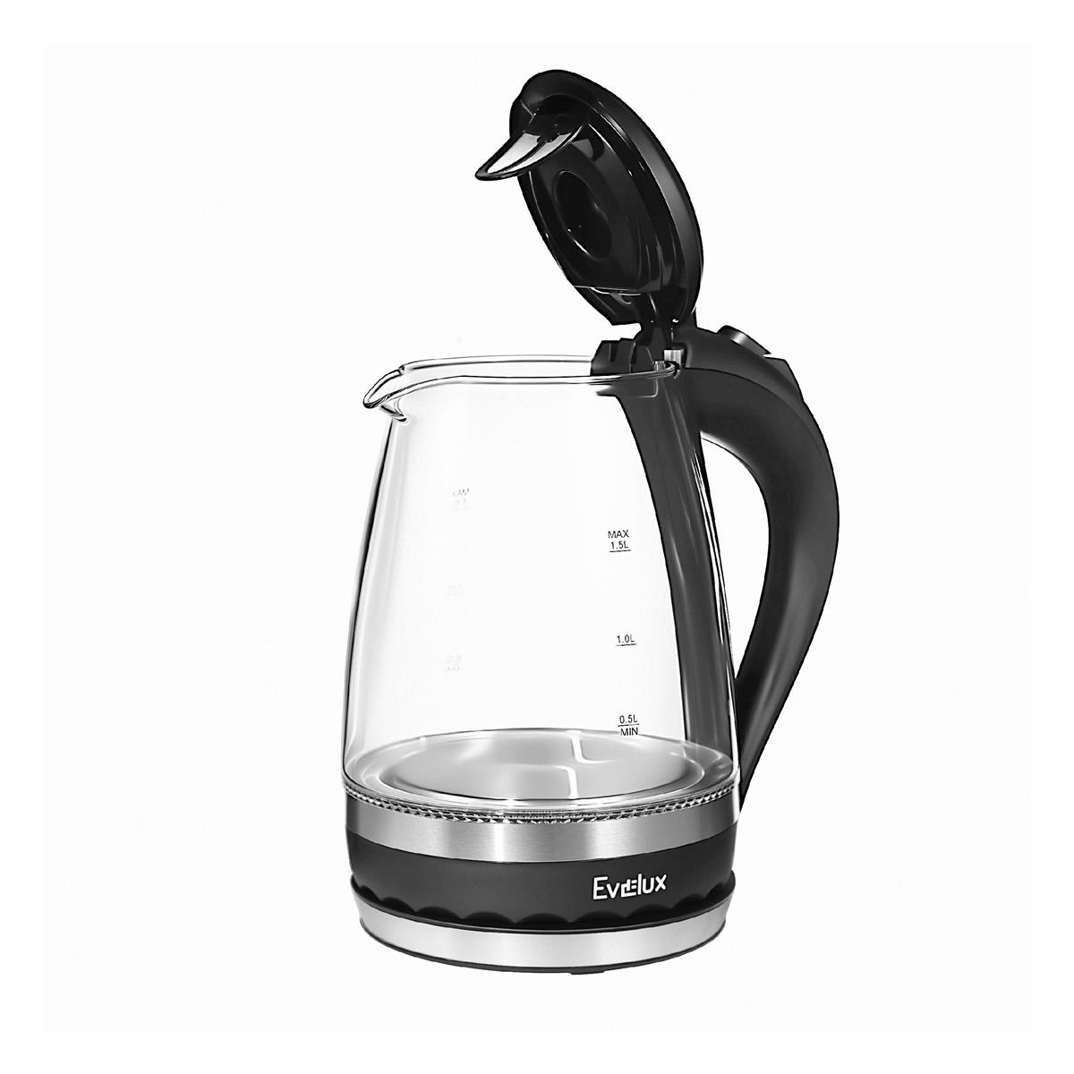 Электрический чайник Evelux EWK 0904 G (2200 Вт/1,5 л /стекло/прозрачный, черный, серебристый) - Интернет-магазин Матрица: бытовая техника, электроника, товары для дома и др.