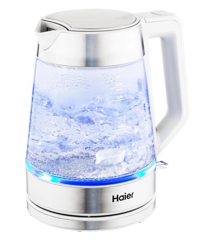 Электрический чайник Haier HK-500 (2200 Вт/1,7 л /стекло/прозрачный, белый, серебристый) - Интернет-магазин Матрица: бытовая техника, электроника, товары для дома и др.