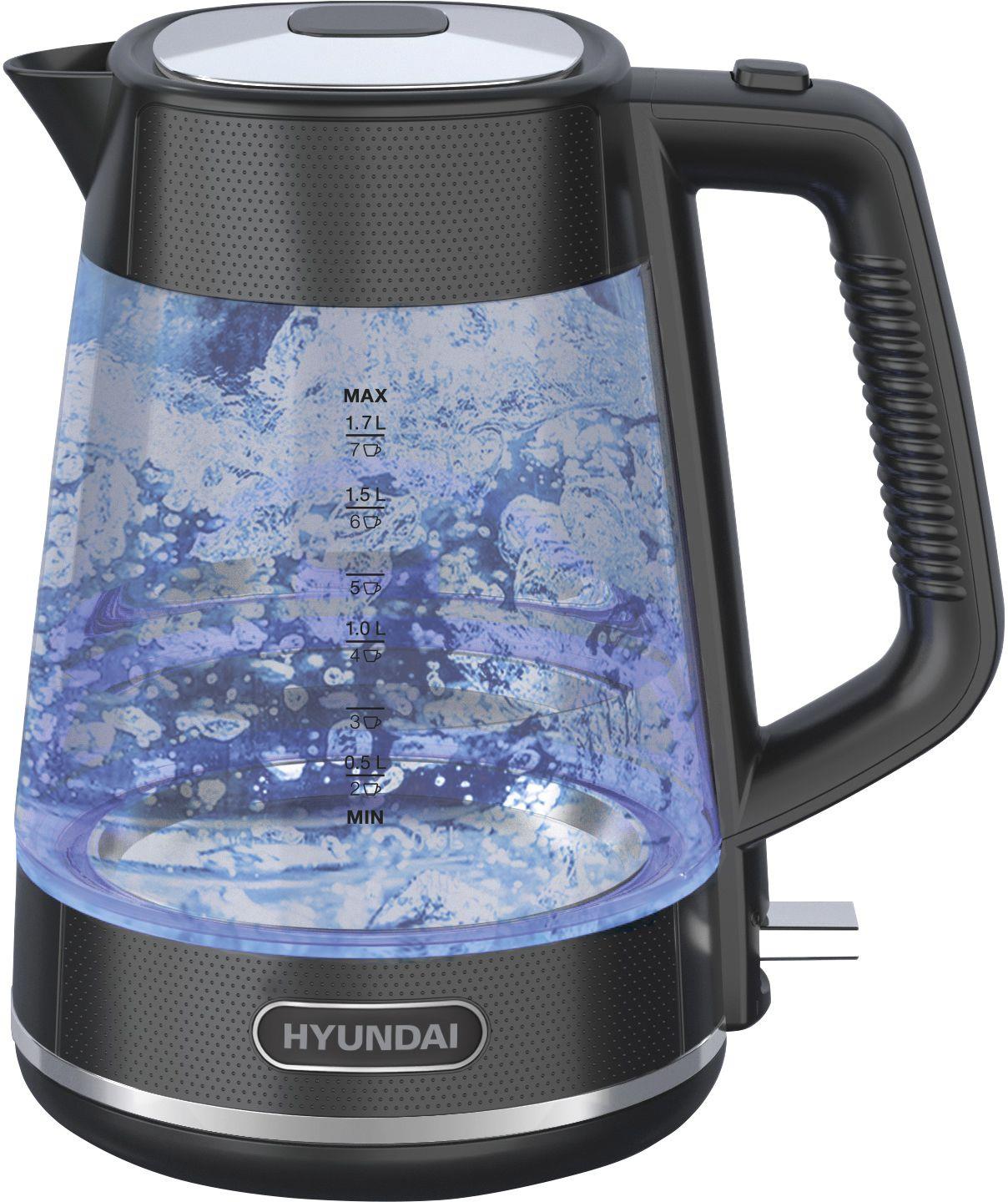 Электрический чайник Hyundai HYK-G3503 (2200 Вт/1,7 л /стекло, пластик/черный, серебристый) - Интернет-магазин Матрица: бытовая техника, электроника, товары для дома и др.