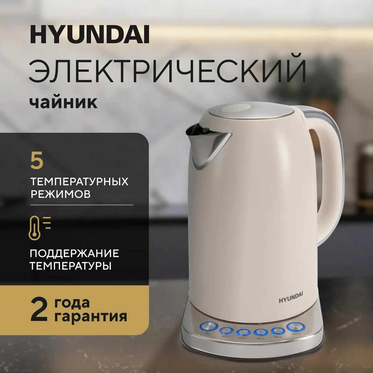 Электрический чайник Hyundai HYK-S5600 (2200 Вт/1,7 л /металл/кремовый, серебристый) - Интернет-магазин Матрица: бытовая техника, электроника, товары для дома и др.