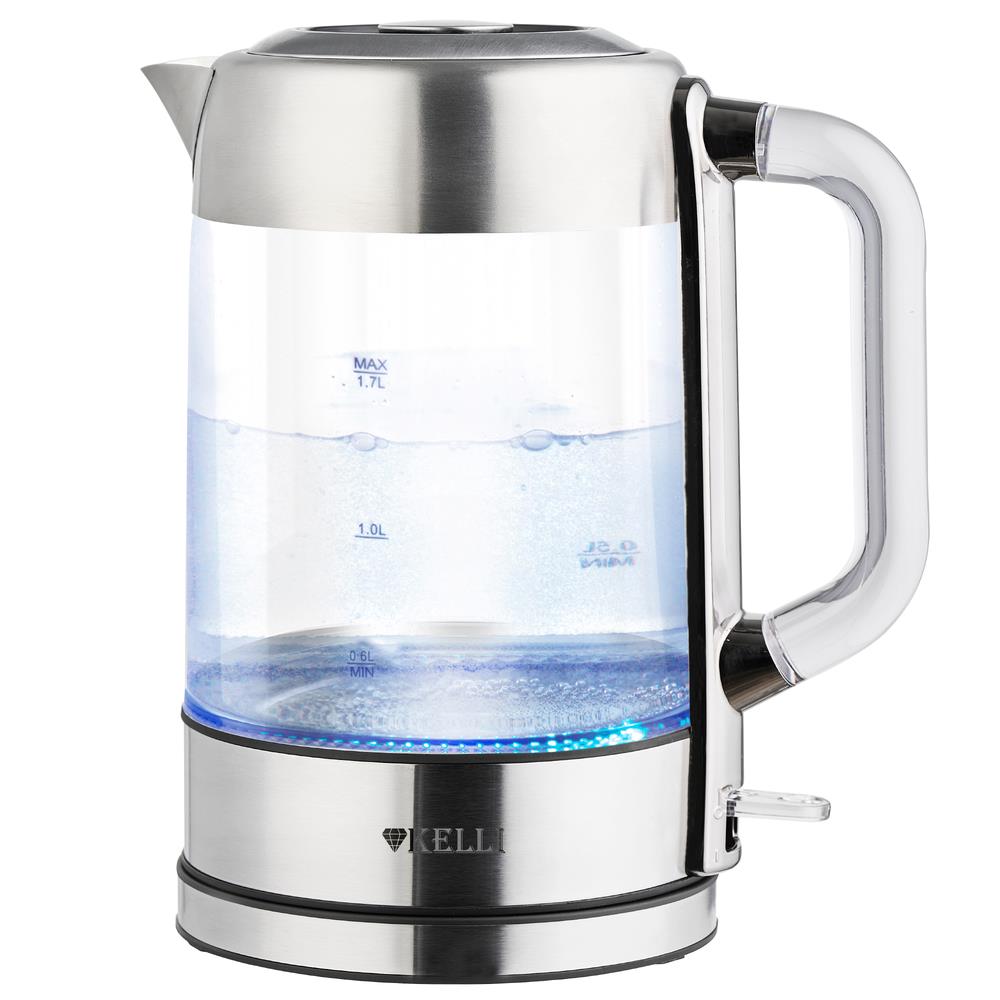 Электрический чайник Kelli KL-1813 (2200 Вт/1,7 л /стекло/прозрачный, серебристый) - Интернет-магазин Матрица: бытовая техника, электроника, товары для дома и др.