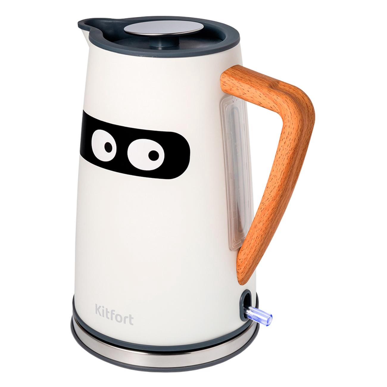 Электрический чайник Kitfort КТ-6148 (2200 Вт/1,7 л /нержавеющая сталь/белый, дерево) - Интернет-магазин Матрица: бытовая техника, электроника, товары для дома и др.