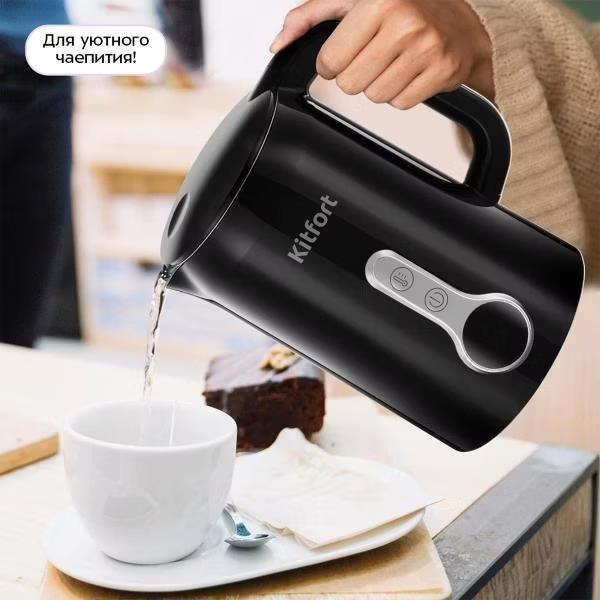 Электрический чайник Kitfort КТ-6701 (2200 Вт/1,7 л /пластик, нержавеющая сталь/черный) - Интернет-магазин Матрица: бытовая техника, электроника, товары для дома и др.