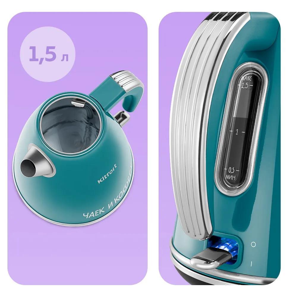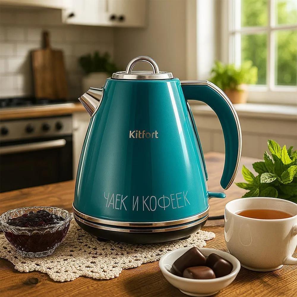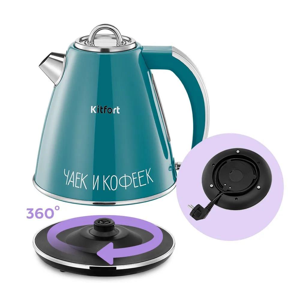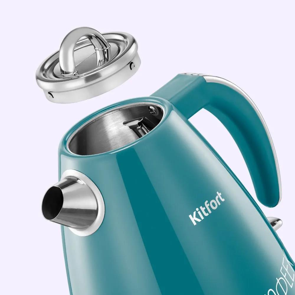 Электрический чайник Kitfort КТ-6748 (2200 Вт/1,5 л /нержавеющая сталь/бирюзовый) - Интернет-магазин Матрица: бытовая техника, электроника, товары для дома и др.