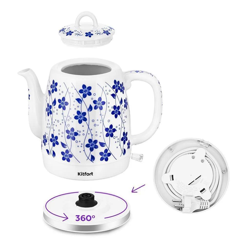 Электрический чайник Kitfort КТ-6788 1л. корпус: керамика (1500 Вт/1 л /керамика/синий, белый)