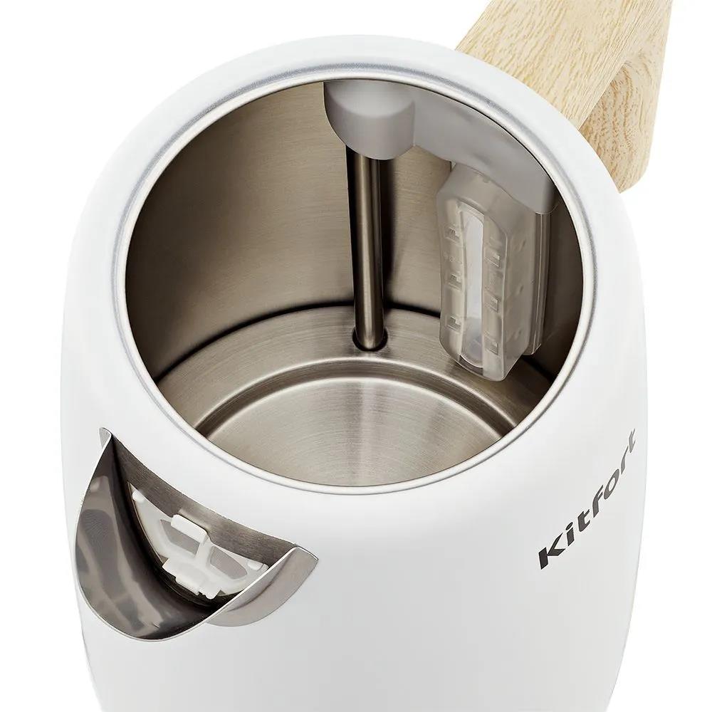 Электрический чайник Kitfort КТ-6794 (2200 Вт/1,7 л /нержавеющая сталь, дерево/белый, дерево) - Интернет-магазин Матрица: бытовая техника, электроника, товары для дома и др.
