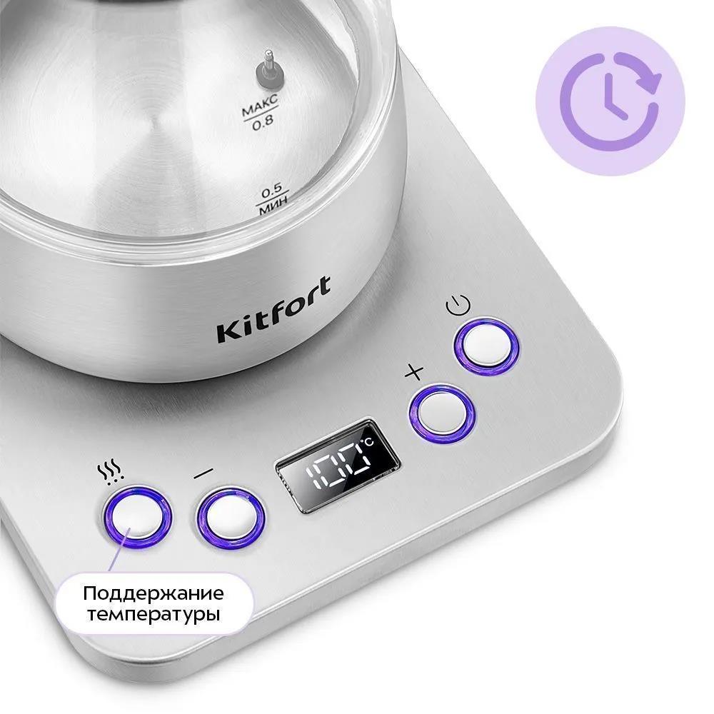 Электрический чайник Kitfort КТ-8707 для варки кофе (1300 Вт/0,8 л /стекло, пластик, нержавеющая сталь/прозрачный, черный, серебристый)