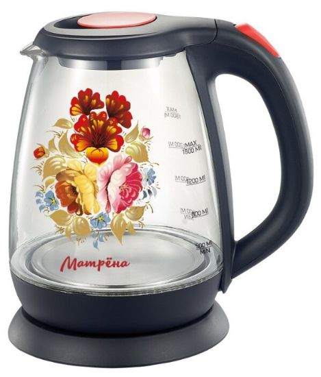 Электрический чайник МАТРЁНА MA-008 хохлома (1500 Вт/1,8 л /стекло, пластик/черный)