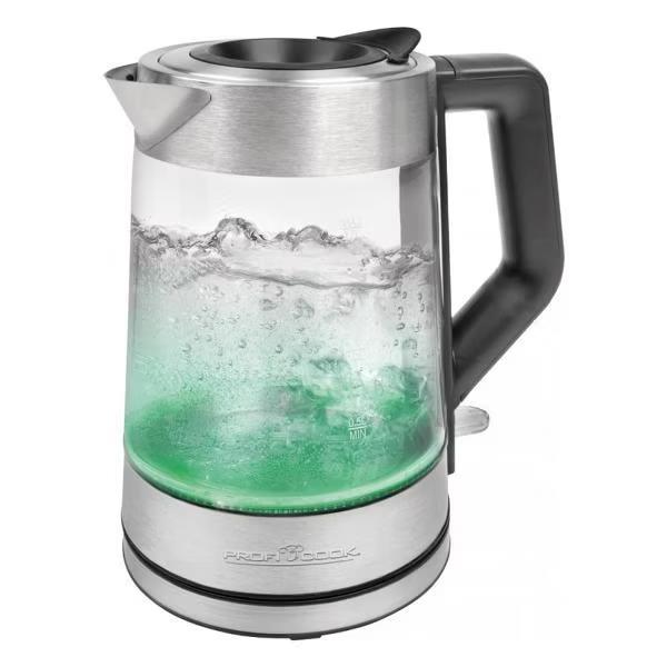 Электрический чайник PROFI COOK PC-WKS 1190 G (2200 Вт/1,7 л /стекло, металл, пластик/прозрачный, нержавеющая сталь) - Интернет-магазин Матрица: бытовая техника, электроника, товары для дома и др.