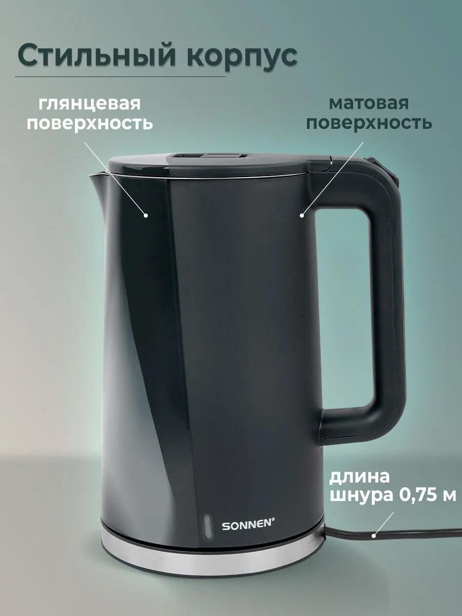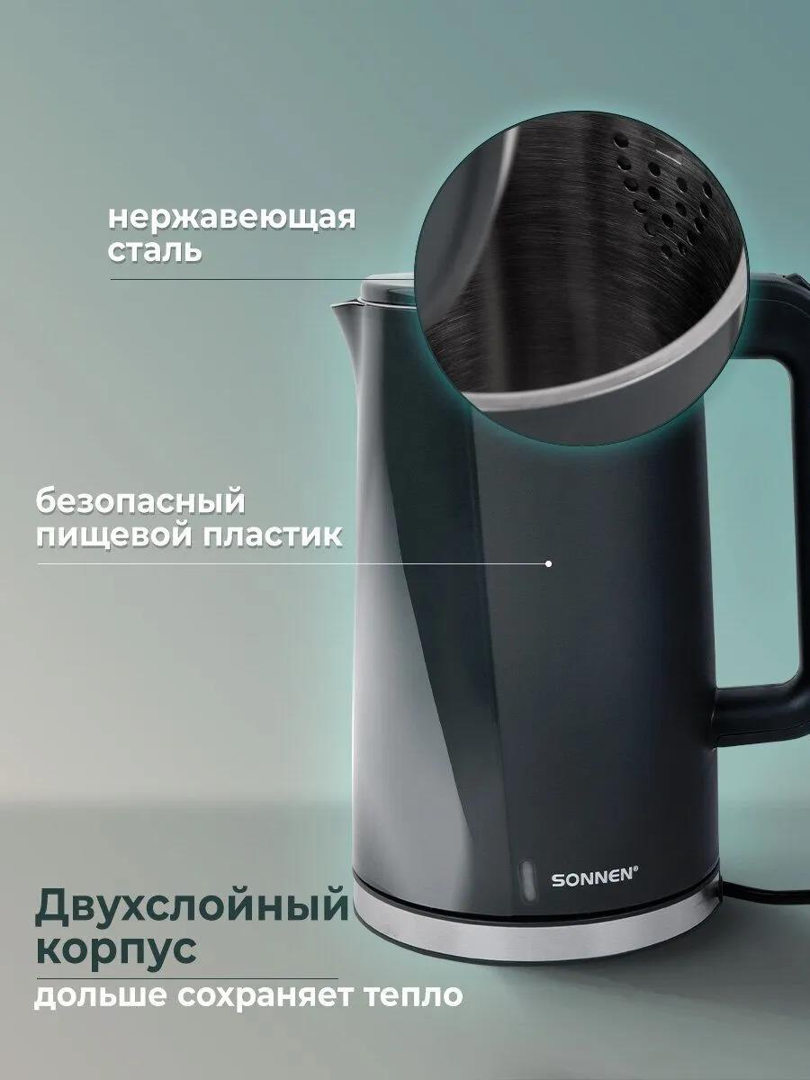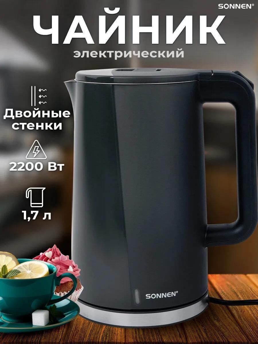 Электрический чайник Sonnen KT-8718B (2200 Вт/1,7 л /пластик, нержавеющая сталь/графит) - Интернет-магазин Матрица: бытовая техника, электроника, товары для дома и др.