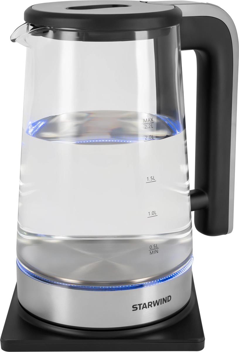 Электрический чайник STARWIND SKG4043 (1800 Вт/2,2 л /стекло/прозрачный, черный, серебристый)