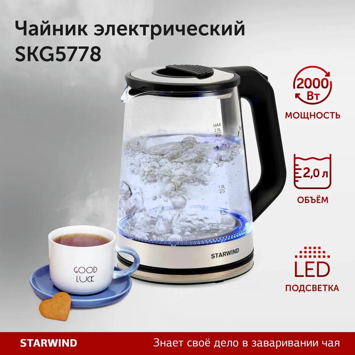 Электрический чайник STARWIND SKG5778 (2000 Вт/2 л /стекло/прозрачный, черный) - Интернет-магазин Матрица: бытовая техника, электроника, товары для дома и др.