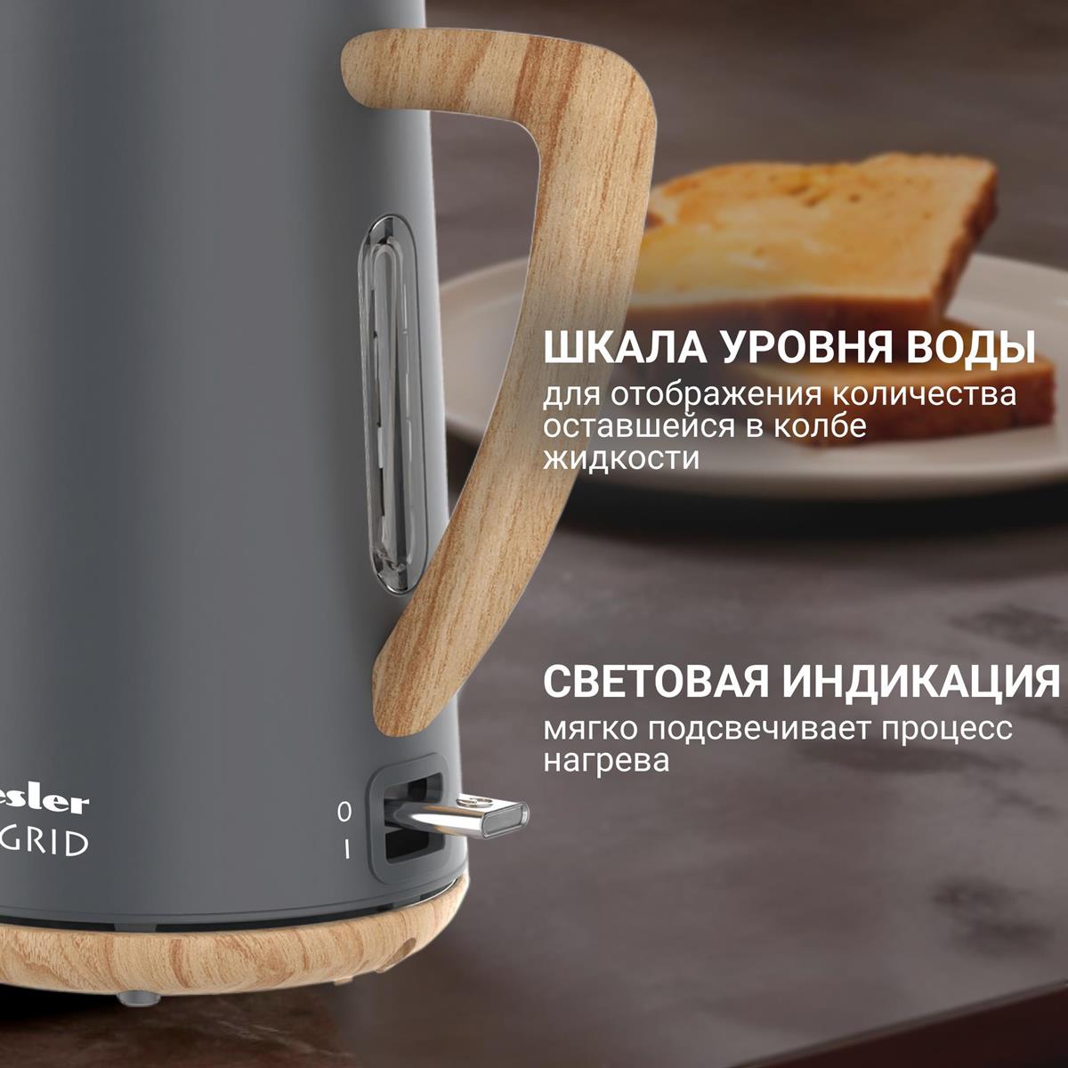 Электрический чайник Tesler KT-1744 GREY (2200 Вт/1,7 л /нержавеющая сталь/серый) - Интернет-магазин Матрица: бытовая техника, электроника, товары для дома и др.