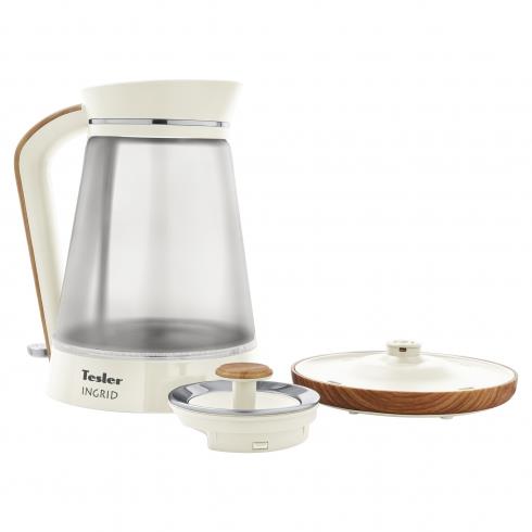Электрический чайник Tesler KT-1750 BEIGE (2200 Вт/1,7 л /стекло, пластик/бежевый, прозрачный) - Интернет-магазин Матрица: бытовая техника, электроника, товары для дома и др.