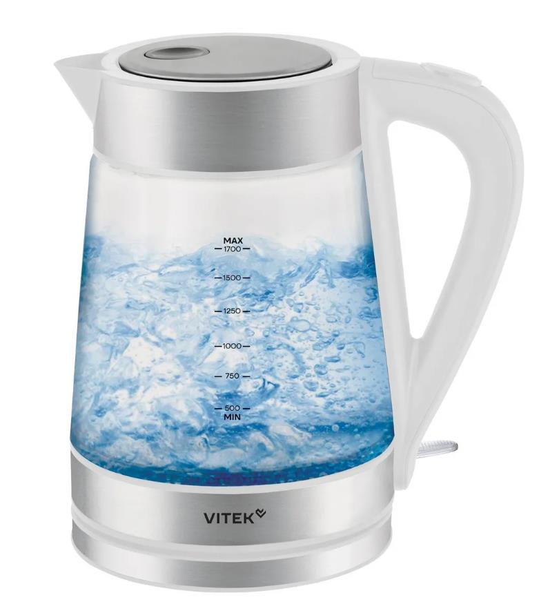 Электрический чайник VITEK VT-WK1030 (2200 Вт/1,7 л /стекло/прозрачный, белый, серебристый) - Интернет-магазин Матрица: бытовая техника, электроника, товары для дома и др.