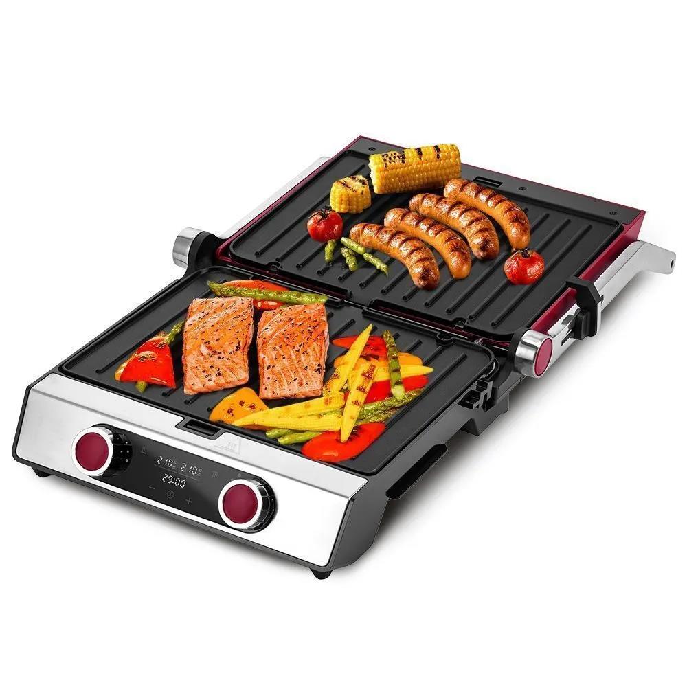 Электрический гриль Kitfort КТ-3631 серебристый, 2200 Вт