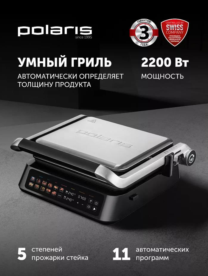 Электрический гриль Polaris PGP 3018 2000Вт серебристый/черный, 2000 Вт - Интернет-магазин Матрица: бытовая техника, электроника, товары для дома и др.