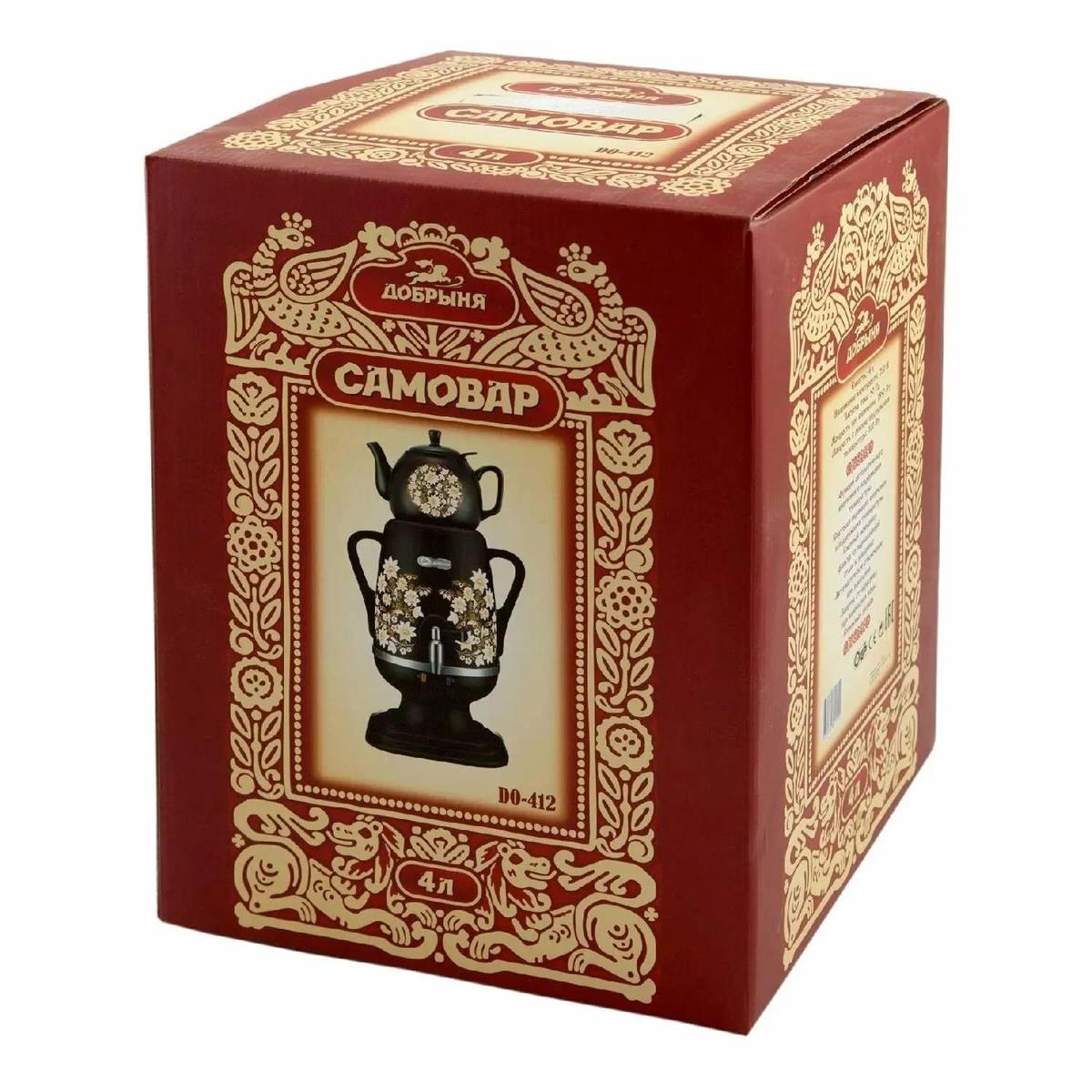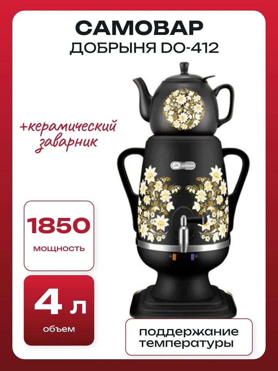 Электрический самовар Добрыня DO-412 (4 л /1850 Вт /черный, рисунок) - Интернет-магазин Матрица: бытовая техника, электроника, товары для дома и др.