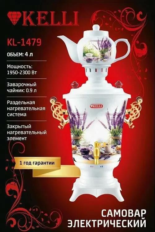 Электрический самовар Kelli KL-1479 (4 л /2200 Вт /белый, фиолетовый)